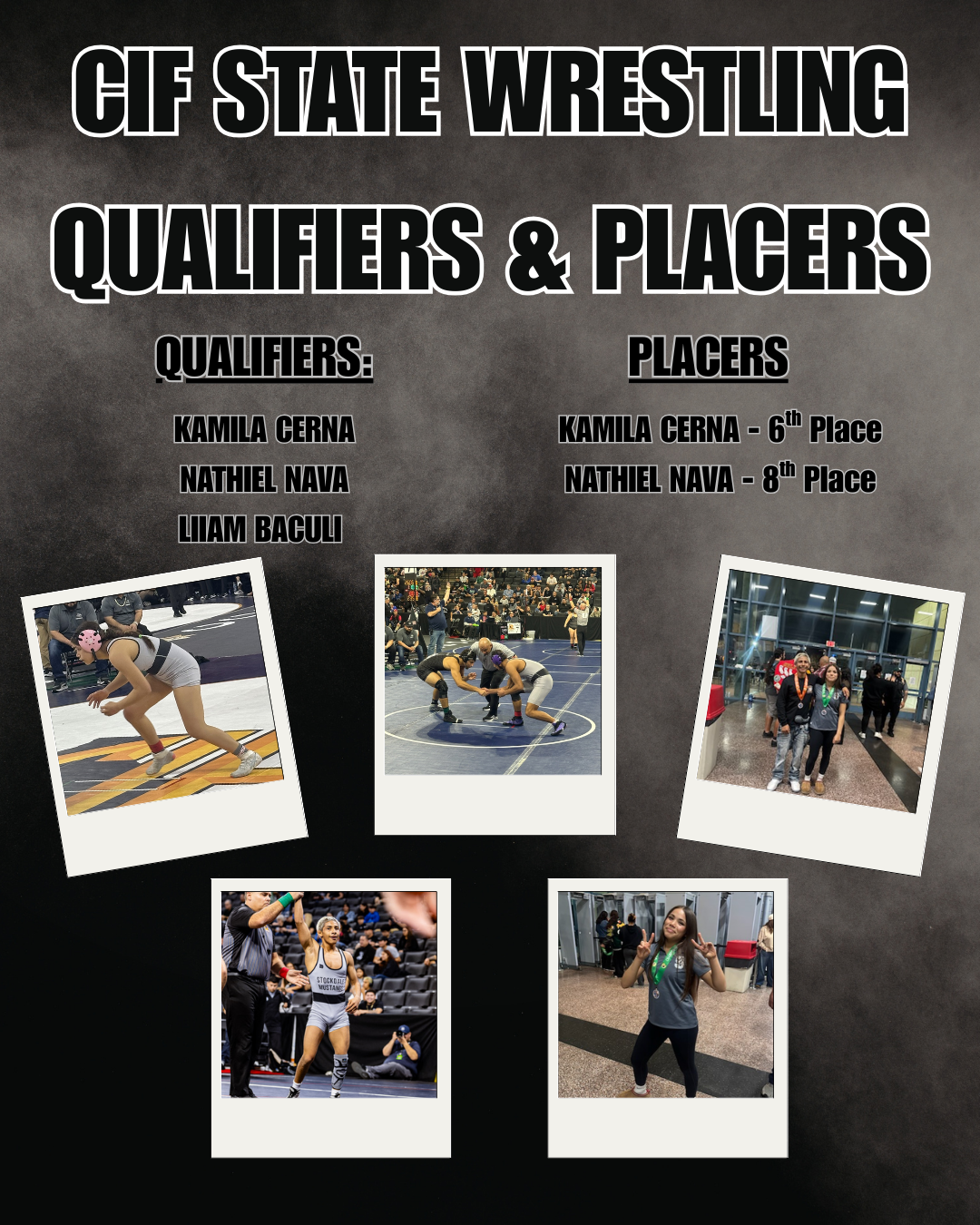 Congratulations to this year's CIF State Wrestling Qualifiers and Placers. Nathiel Nava is the first male placer in Stockdale's history and Kamila Cerna placed for the second year in a row. With Nathiel and Kamila both being sophomores, the future of Stockdale Wrestling looks bright.